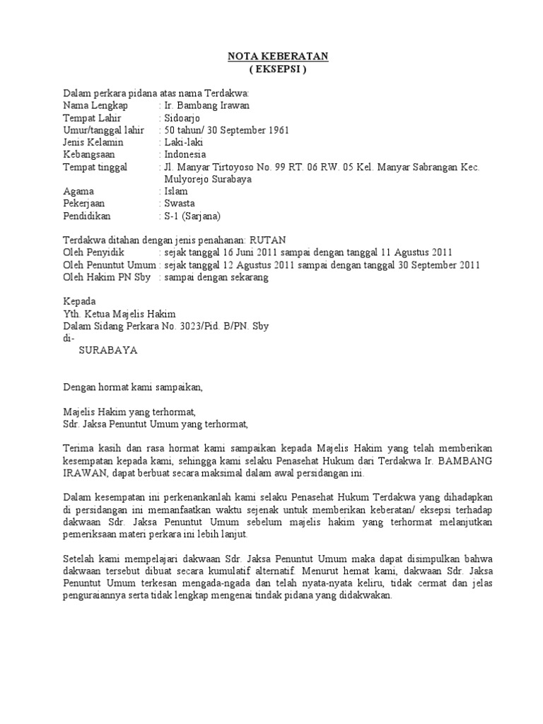 Contoh Nota Keberatan Eksepsi Perkara Pidana Hukum Indonesia from 1.bp.blogspot.com Parody wiki crying / parody wiki crying : Paco el chato 2 de secundaria español / libro de m. Contoh eksepsi perdata wan prestasi / contoh eksep.